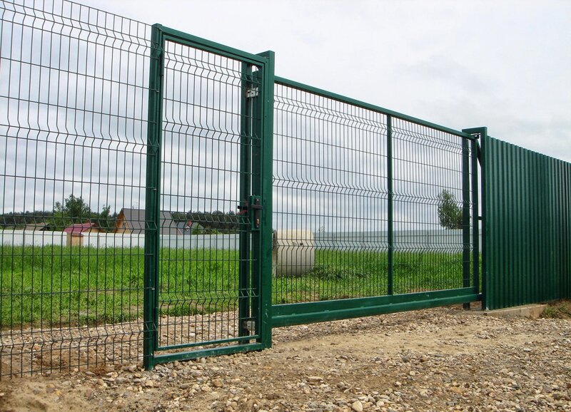 Откатные сварные ворота с встроенной калиткой и автоматикой